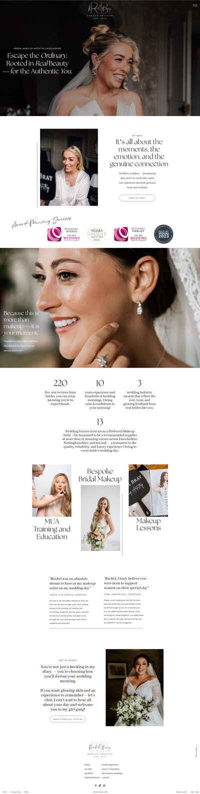 Evelyn is our premium website template with a refined aesthetic for bridal hair & makeup artists, created with Claire Jane - a bridal hair & makeup artist with over 15 years in the industry.